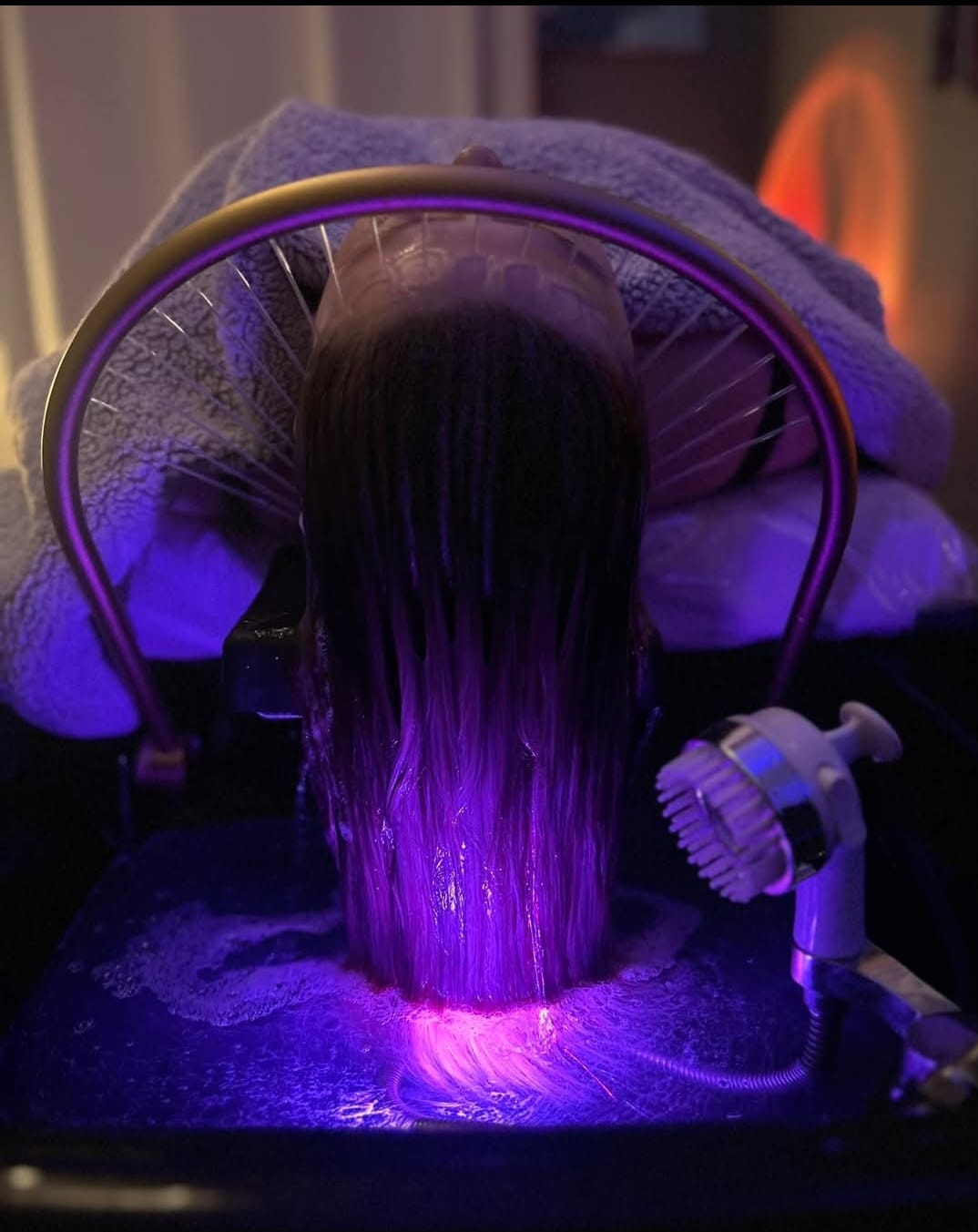 Réservez !Votre Head Spa débutera par 30 mn de massage cranien balinais apaisant "pijat képala" détoxinant pour votre cuir chevelu, drainant, délassant favorisant la pousse des cheveux et l'élimination du stress, puis d'un masque profond sous dôme de vapeur parfumé par des huiles essentielles, vous ressentirez l'utilisation d'une brosse stimulante et d'accessoires de massages de la tête, suivi d'un shampoing adapté à vos cheveux, le rinçage se fera sous pluie délassante de l'arche doré puis l'appliquation d'un soin sans rincage démêlant protecteur... Ce ne sera pas tout pour terminer le modelage liftant du visage (nuque, décolleté, épaules). Temps hors séchage des cheveux naturellement ou par sèche-cheveux disponible.
